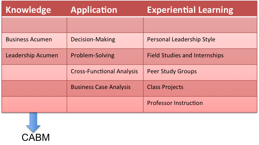 Our first level of Stackable Credentials in Business Acumen is the CABM* Credential. Taking the MBA Learning Components, the CABM covers the ‘Knowledge‘ Portion of the MBA:
